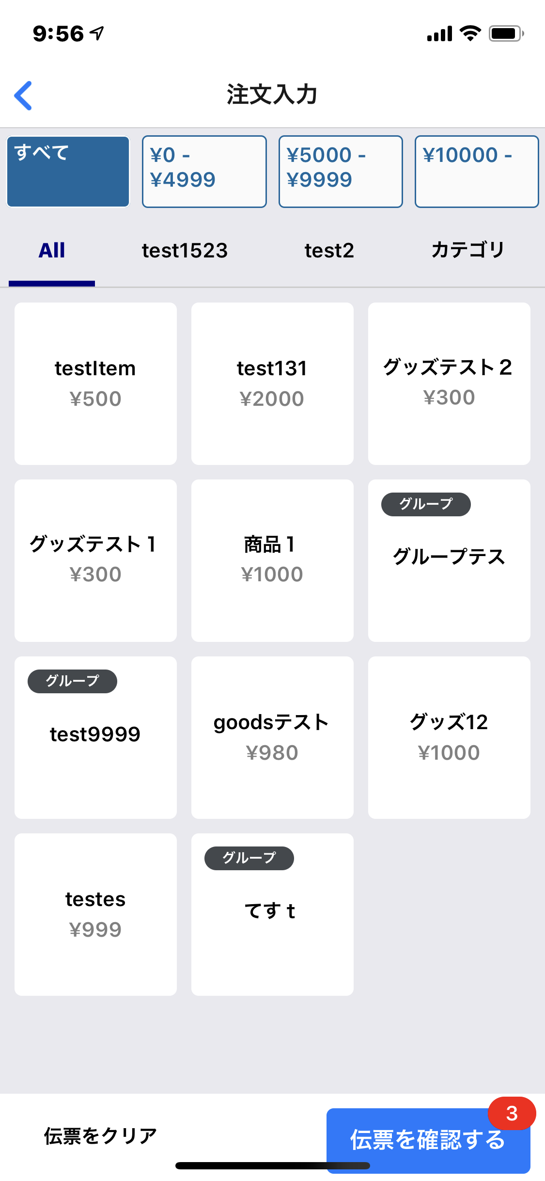 目的の商品をタップすることで、伝票に商品を追加することが出来ます。
