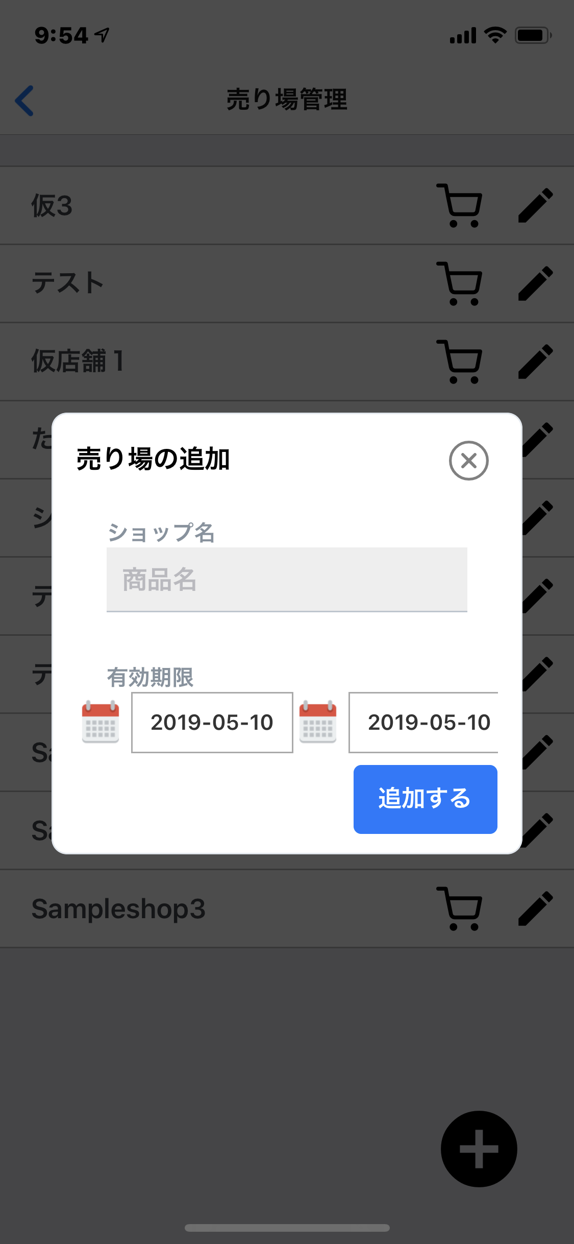 ショップ名と有効期限を設定し『追加する』をタップすると、登録処理が行われます。